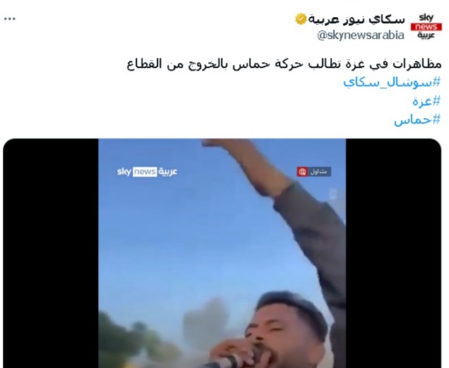 وبرزت الحملة بمقطع فيديو نشره حساب قناة “سكاي نيوز عربية – أبوظبي” على منصة إكس، تم الزعم أنه يوثق “تظاهرات شعبية غاضبة ضد حركة حماس في قطاع غزة” وأنه حديث العهد.