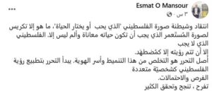 ليس غريبًا أن ينطق عصمت منصور بالمفردات نفسها التي يستخدمها بعض المبررين لهيمنة الاحتلال، فمصطلحات مثل “بدنا نعيش” و”اختيار الحياة” ليست تعبيرًا بريئًا عن حب البقاء، بل نسخة مكررة من الخطاب الذي يسعى الاحتلال لفرضه، حيث تُقاس الحياة وفق مدى القبول بسيادته.