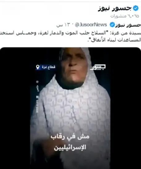 تواصل منصة جسور نيوز، الممولة إماراتيًا، حملتها الإعلامية المنحازة التي تستهدف تشويه صورة المقاومة الفلسطينية، عبر سلسلة من المقاطع المصورة المفبركة والتي تفتقد إلى أبسط معايير المهنية الصحفية.