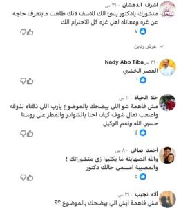 ولم تمض دقائق على نشر المنشور حتى انهالت التعليقات الغاضبة من المتابعين، معتبرين أن المنشور يعكس انفصالًا صارخًا بين جمال نزال والواقع المعيشي القاسي لسكان غزة، وأن محاولة المزاح على حساب معاناتهم تجاوزت حدود المقبول.