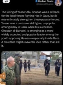 اللافت أنّ هذه المنصة، التي سبق أن نسّقت مقابلات حصرية مع قائد المليشيات السابق المدعو ياسر أبو شباب، انتقلت اليوم إلى مرحلة جديدة بعد مقتله، وهي مرحلة إعادة إنتاج القائد الجديد المدعو غسان الدهيني ومحاولة تسويقه كـ“شخصية مقبولة” داخل غزة.