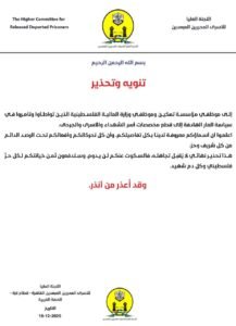 من جانبها، أصدرت اللجنة العليا للأسرى المحررين المبعدين بيانًا تحذيريًا شديد اللهجة، وجّهته إلى موظفين في مؤسسة تمكين ووزارة المالية الفلسطينية، متهمةً إياهم بالتواطؤ في ما وصفته بـ”سياسة عار” تستهدف قطع مخصصات أسر الشهداء والأسرى والجرحى.