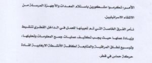 مضاعفة نشاطهم داخل دولة قطر، لا سيما في الصفوف التي تتفاعل مع حركة “حماس”.