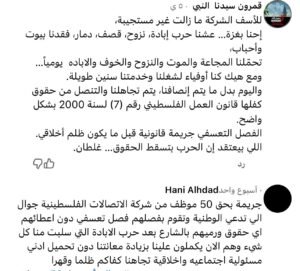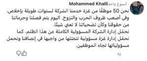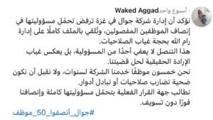 وأشار إلى أن إدارة الشركة في غزة ترفض تحمّل مسؤوليتها في إنصاف الموظفين المفصولين، وتُلقي بالملف كاملًا على إدارة رام الله بحجة غياب الصلاحيات.