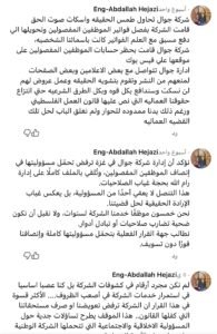 وفي ذات السياق، قال المهندس عبدالله حجازي، أحد الموظفين المفصولين، إن “شركة جوال تحاول طمس الحقيقة وإسكات صوت الحق”، متهمًا الإدارة باتخاذ إجراءات تصعيدية بحق الموظفين المفصولين، من بينها فصل خطوط الفواتير الخاصة بهم وتحويلها إلى نظام الدفع المسبق، رغم أنها مسجلة بأسمائهم الشخصية.