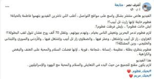 إذ أن المدعو أشرف نصر لم يكتف بالدفاع عن الزيارة، بل ذهب إلى حد وصف المطبّعة البحرينية بـ“البطلة”، لأنها زارت تل أبيب وطالبت بـ“السلام والتعايش والمحبة” مع دولة الاحتلال.