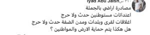 لكن تعليقات الجمهور كشفت فجوة واسعة بين القول والفعل، وأظهرت إحباط المواطنين من تقصير السلطة على الأرض، فقد عبّر عدد من المتابعين عن استيائهم من عدم حماية القرى والمواطنين من اعتداءات المستوطنين، مؤكدين أن “الوطن لا يُحفظ بالمظاهر والبدلات الرسمية بل يُصان بالتضحيات وارتداء البزة العسكرية دفاعًا عنه كما فعل ياسر عرفات (أبو عمار)”.