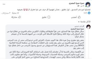يواصل المدعو حمزة المصري العضو في شبكة أفيخاي الإسرائيلية، سلوكياته القذرة والمشبوه بالترويج لدعاية المنسق الإسرائيلي في قطاع غزة وخطط فرض التهجير القسري على القطاع عقب حرب الإبادة الجماعية الإسرائيلية.
