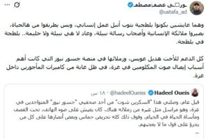 فقد كتب المرتزق مصطفى عصفور منشورا جاء فيه “كل الدعم للأخت هديل عويس وزملائها في منصة جسور نيوز التي كانت أهم أسباب إيصال صوت المكلومين في غزة في ظل غابة من كاميرات المأجورين داخل غزة”.