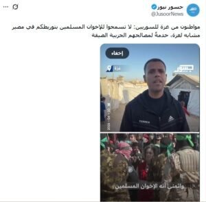إذ نشرت جسور نيوز تقريرا لما قالت إنه لمواطنين في غزة يوجهون في رسائل للسوريين بأنه “لا تسمحوا للإخوان المسلمين بتوريطكم في مصير مشابه لغزة، خدمةً لمصالحهم الحزبية الضيقة”.