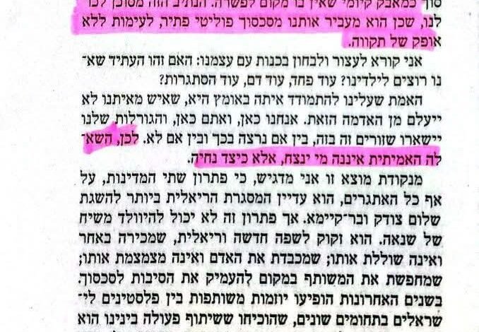 وقال في اقتباس من مقاله: “ترددت بالكتابة لكنني في النهاية قررت أن أكتب لكم بدافع المسؤولية، وفي ظل الواقع الصعب والمعقّد والذي يزداد خطرًا على شعبينا.”