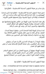 وأشار البيان إلى أحداث 7 أكتوبر وتداعياتها على المدنيين دون تخصيص واضح لمعاناة الفلسطينيين، بمساواة صادمة بين الضحية والجلاد.