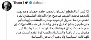 وعليه فإن الهجوم على المنتخب الفلسطيني بعد الفيديو ليس إلا حلقة جديدة من الحرب على الوعي، ومحاولة لمعاقبة اللاعبين لأنهم اختاروا أن يكونوا جزءًا من شعبهم لا واجهة تُستخدم للتحريض وخدمة خطط الاحتلال.